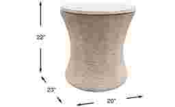 Earthy texture meets sculptural form in the organic beauty and bold craftsmanship of the Elysium end table. Featuring a gracefully tapered iron base wrapped in hand-applied natural jute, this piece's silhouette is shaped with striking curvature and artisanal texture. A true statement in transitional style, the warm, woven base contrasts beautifully with a smooth top finished in a natural tone, bringing rich character to coastal, bohemian, or modern organic interiors.