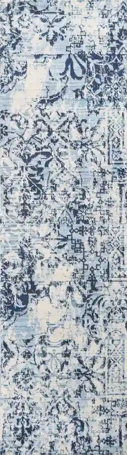 Absolutely. This rug's transitional design bridges the gap between classic motifs and modern color palettes. The muted blend of blue, gray, and ivory accents makes it a versatile foundation that complements sleek, modern furniture as easily as it does traditional decor. Its rectangular runner shape is particularly effective in defining zones or guiding movement within open-concept apartment layouts.