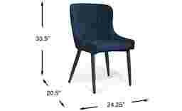 Pull up a comfortable place to sit for mealtime with the Emeric side chair. Featuring chic upholstery in a lovely navy color, this chair gives you and your guests a comfortable place to sit without sacrificing on style. This chair has simple curved lines and low sides.