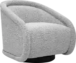 Introducing the Emmamine gray swivel accent chair. Designed with a solid wood base and a swivel function, its wrapped shelter arm and wide, deep seat offer unparalleled comfort and the perfect space to accessorize with your own pillow. The sensuous sloping back ensures this chair remains a stunning focal point, no matter where it's placed in the room. Customer assembly is required.