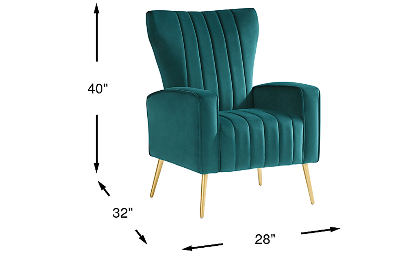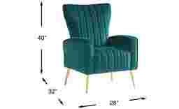 Sophisticated with a sublime polish, the refined style of the Emmanuel chair compliments your modern look with a splash of class. Upholstered with plush velvet fabric in a teal tone, this accent chair's irresistible look features sophisticated track arms and a wingback design highlighted by elegant vertical channels. Gold finish on the tapered metal legs provides a perfect final contrast. Upholstery: 100% polyester