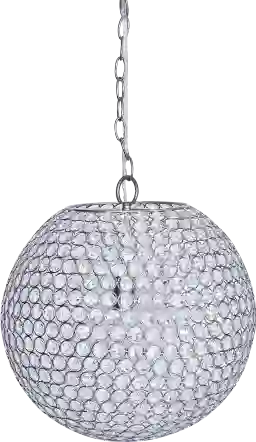 Add style and sophistication to your home with this gorgeous Emory Gate pendant. The spherical metal shade has genuine crystal pieces that have been individually threaded through the shade. When lit, it will create a beautiful cascading pattern on the surrounding walls. Whether in the kitchen, the dining room, or anywhere that could use a bit of overhead light, this pendant is designed to catch the eye of your guests and brighten your space. Professional installation by an electrician is recommended.