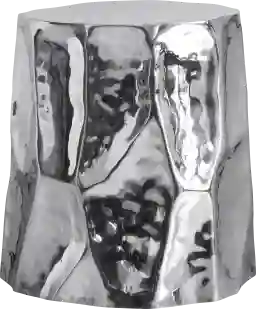 The light-reflecting properties of the chrome finish make this a versatile accent for brightening a room. To highlight the "crushed" organic shape, consider placing it on a textured rug for contrast. Its 19-inch height and flat top also make it a functional pedestal for showcasing a minimalist lamp or a piece of modern art.