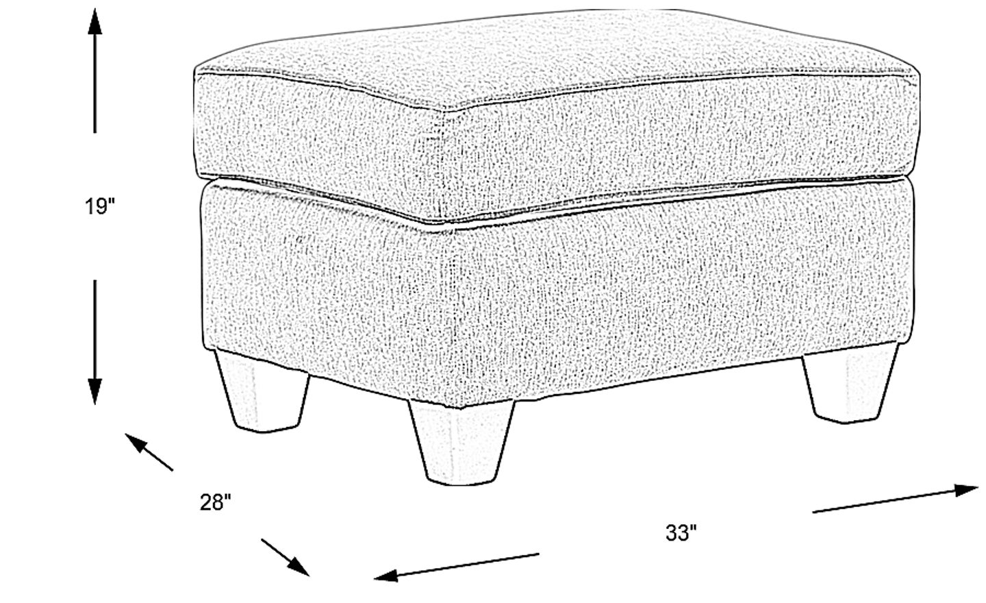 For resting tired feet or for use as an extra seat when company comes, the Emsworth ottoman is an adaptable piece. Highlighted by a simple rounded square design and welted seams, textured neutral beige colored upholstery and precision tailoring give this ottoman a streamlined appearance. 100% polyester.