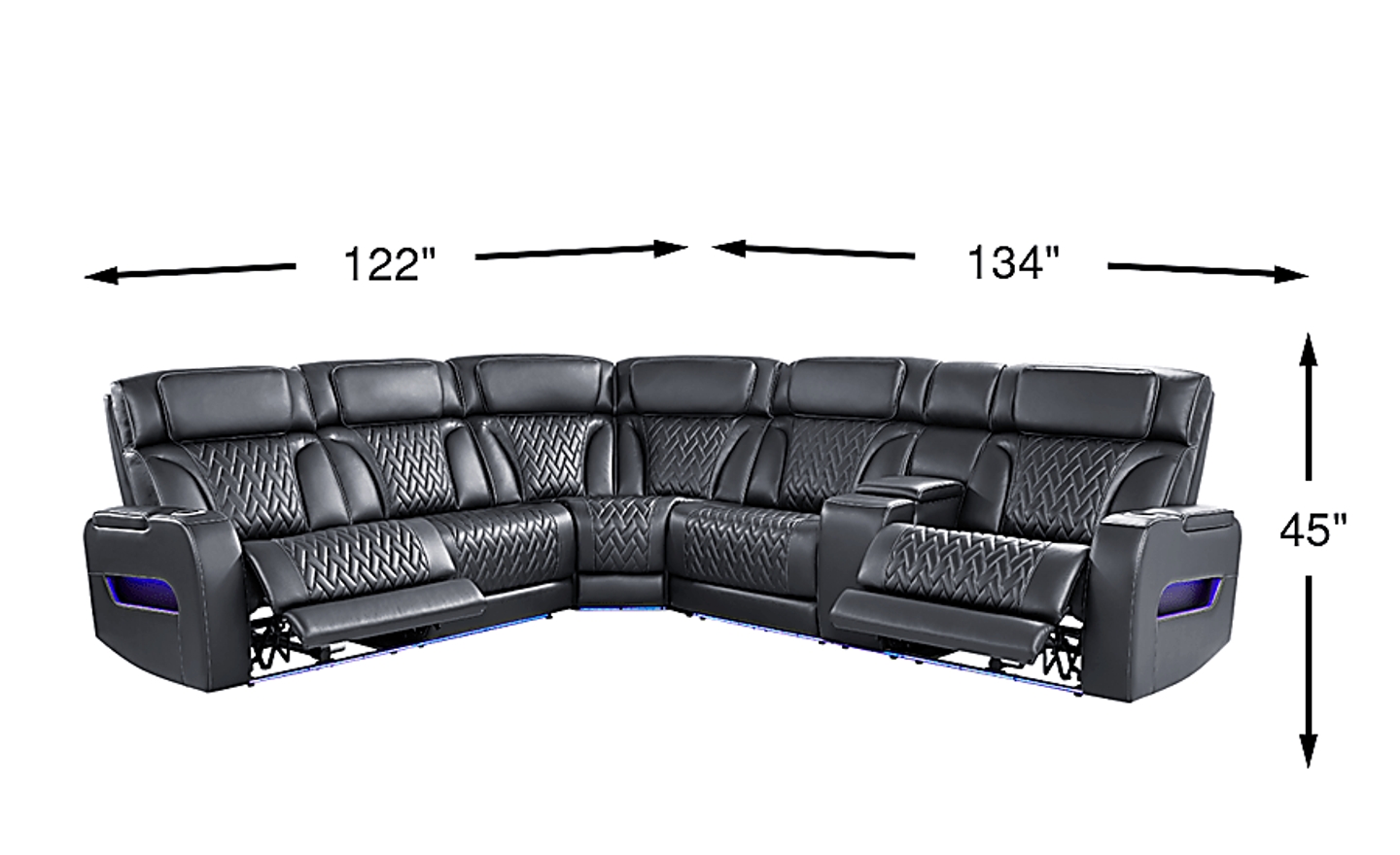 Usher in a renaissance of relaxation with room for your whole entourage when the Encore sectional comes home. Covered with top grain leather where the body touches, the upholstery's breathtaking black color is a feast for the eyes with stitching that details the piece with contemporary appeal. Experience the feeling of weightlessness when the zero-gravity mechanism puts your feet above your heart, easing pressure with triple power adjustable headrests, footrests, and lumbar supports. Convenience is key with USB charging ports and unique slot-style wireless charging. Keep a beverage close at hand with cupholders located on each end of the piece and on the right arm facing loveseat's center console. In addition to being the perfect arm rest, it offers a handy storage compartment. Ambient lighting running along the rail and side pockets of the piece goes above and beyond to tailor the final look with excitement. Upholstery: Top grain leather where the body touches and polyurethane fabric sides and backs. Leather is a durable, low maintenance product, however, general regular maintenance is necessary. To keep your leather clean, vacuum it regularly, removing any dust, and clean it with water and a mild non-detergent soap.