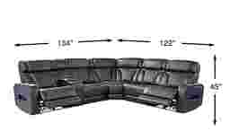 Usher in a renaissance of relaxation with room for your whole entourage when the Encore sectional comes home. Covered with top grain leather where the body touches, the upholstery's breathtaking black color is a feast for the eyes with stitching that details the piece with contemporary appeal. Experience the feeling of weightlessness when the zero-gravity mechanism puts your feet above your heart, easing pressure with triple power adjustable headrests, footrests, and lumbar supports. Convenience is key with USB charging ports and unique slot-style wireless charging. Keep a beverage close at hand with cupholders located on each end of the piece and on the left arm facing loveseat's center console. In addition to being the perfect arm rest, it offers a handy storage compartment. Ambient lighting running along the rail and side pockets of the piece goes above and beyond to tailor the final look with excitement. Upholstery: Top grain leather where the body touches and polyurethane fabric sides and backs. Leather is a durable, low maintenance product, however, general regular maintenance is necessary. To keep your leather clean, vacuum it regularly, removing any dust, and clean it with water and a mild non-detergent soap.