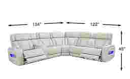 Usher in a renaissance of relaxation with room for your whole entourage when the Encore sectional comes home. Covered with top grain leather where the body touches, the upholstery's breathtaking gray color is a feast for the eyes with stitching that details the piece with contemporary appeal. Experience the feeling of weightlessness when the zero-gravity mechanism puts your feet above your heart, easing pressure with triple power adjustable headrests, footrests, and lumbar supports. Convenience is key with USB charging ports and unique slot-style wireless charging. Keep a beverage close at hand with cupholders located on each end of the piece and on the left arm facing loveseat's center console. In addition to being the perfect arm rest, it offers a handy storage compartment. Ambient lighting running along the rail and side pockets of the piece goes above and beyond to tailor the final look with excitement. Upholstery: Top grain leather where the body touches and polyurethane fabric sides and backs. Leather is a durable, low maintenance product, however, general regular maintenance is necessary. To keep your leather clean, vacuum it regularly, removing any dust, and clean it with water and a mild non-detergent soap.