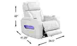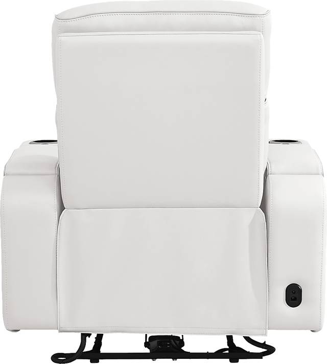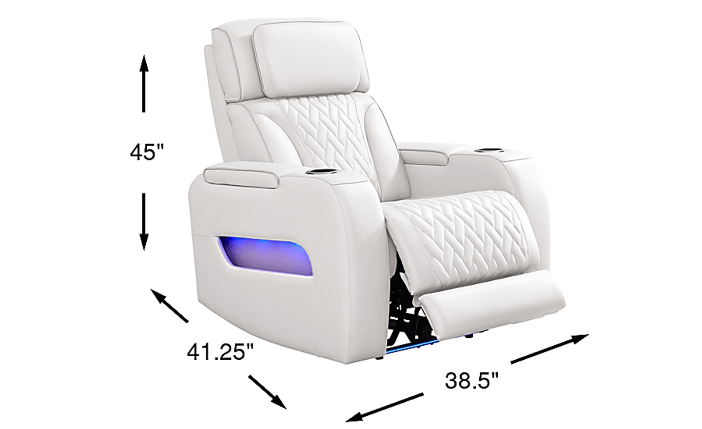 Raise the roof for the utterly relaxing Encore recliner. Covered with top grain leather where the body touches, the upholstery's breathtaking white color is a feast for the eyes with stitching that details the piece with contemporary appeal. Experience the feeling of weightlessness when the zero-gravity mechanism puts your feet above your heart, easing pressure with triple power adjustable headrests, footrests, and lumbar supports. Convenience is key with USB charging ports and unique slot-style wireless charging. Keep a beverage close at hand with cupholders located on the armrests of the piece. Ambient lighting running along the rail and side pockets of the piece goes above and beyond to tailor the final look with excitement. Upholstery: Top grain leather where the body touches and polyurethane fabric sides and backs. Leather is a durable, low maintenance product, however, general regular maintenance is necessary. To keep your leather clean, vacuum it regularly, removing any dust, and clean it with water and a mild non-detergent soap.