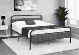 Introducing the Energeny gray queen bed that will transform your bedroom into a chic sanctuary. The black metal frame provides sturdy construction and is accented with an upholstered headboard and footboard in a luxurious gray linen-look, soft touch fabric with foam cushioning, adding a fashionable touch to any modern bedroom. With a minimalist yet stylish design, this bed frame requires no box spring. It has metal bars all along the base to support a standard queen size mattress, not included, for ultimate comfort. Easy to assemble with the illustrated instructions included, you will start to enjoy your fashionable style, new bedroom space in no time. This platform bed is for the frame only. Customer assembly is required.