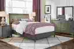 End each day in style and comfort with the Englewood bed. This elegant transitional bed balances an upholstered footboard with a low footboard. The tufted headboard makes a statement with stitching detail that creates a diamond pattern. Made with birch veneers, the bed is finished in a neutral gray color. Mattress and foundation (if required) sold separately. Bed shown is queen size.