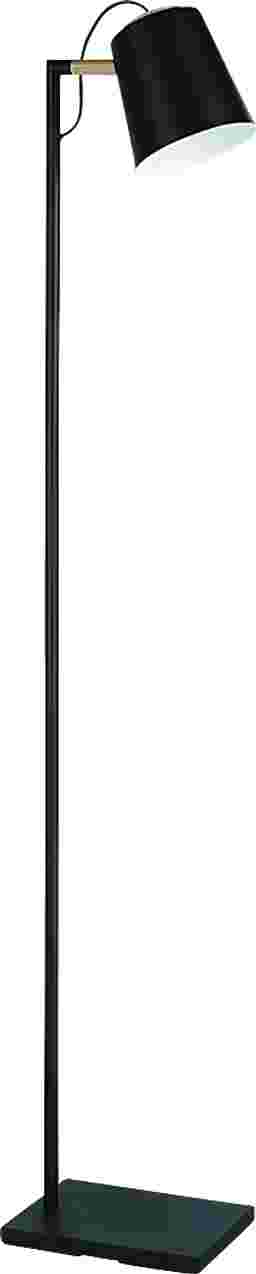 The Engrich Lane floor lamp features a structured black finish with a natural wood accent. The metal shade is adjustable and has a structured black exterior and white interior finish. Luminate a dark corner of your home with this stylish floor lamp. Partial assembly may be required.