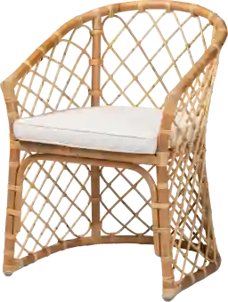 Endow your space with the serene comfort and refreshing design of the Enilan brown armchair. This chair is comprised of a natural rattan frame adorned with woven embellishments. Its plush seat features a cushion padded with layers of foam and upholstered in smooth fabric for superb comfort. The Enilan will arrive fully assembled and utilizes sloping armrests for both added comfort as well as a striking silhouette. Offering lavish comfort in charming design, the Enilan elevates any dining occasion.