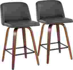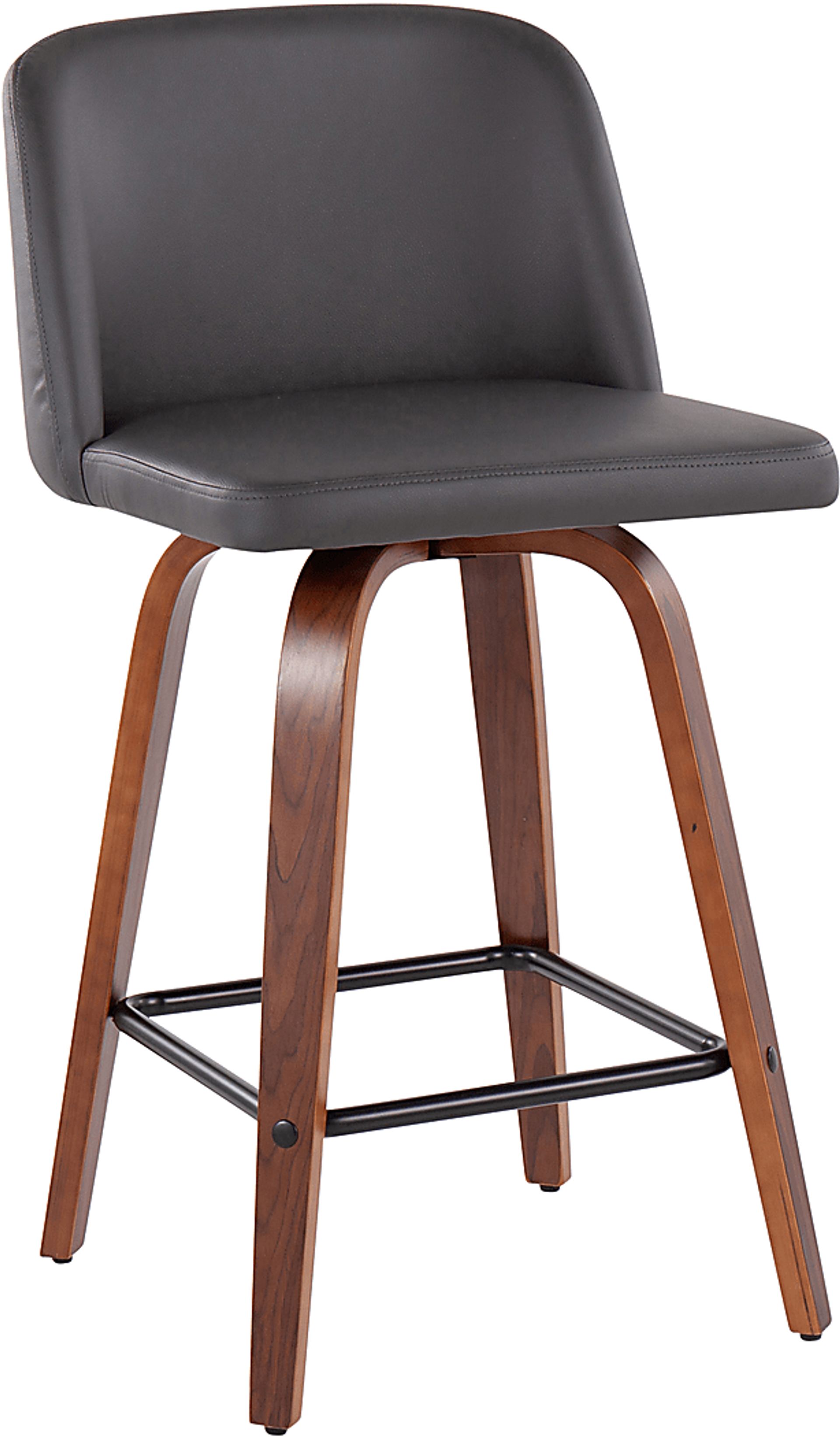 Comfort, modern simplicity, and classic lines define the appealing look of the Enora Ann counter height stool. A padded look of leather upholstered seat sits on a fixed-height mid-century inspired tapered leg base with a square footrest. This counter stool features a 360 degree swivel. Customer assembly required.