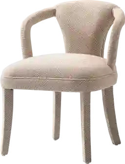 Yes. The chair features a solid back design and integrated curved arms that provide structured, wrap-around support. It is expertly upholstered in a high-quality tweed, a material chosen for its sophisticated texture and natural durability, ensuring guests remain comfortable from the first course through after-dinner conversation.