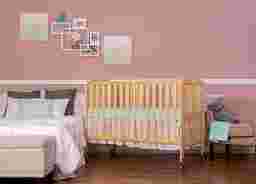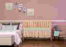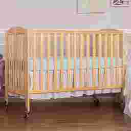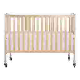 The Ensly natural folding crib is a two-position full-size folding crib. When the crib is not needed, simply fold flat using the patented folding system and store. No disassembly involved. Now that is convenience! This crib is ready to use again by simply unfolding and locking into place making it perfect for guests with babies, grandparents, caregivers, daycares, and hotels. The stationary rail design and locking, heavy-duty commercial size wheels ensure safe use now and in the future. Mattress and bed linens are not included. Customer assembly required. This crib meets all applicable ASTM and CPSC standards. Customer assembly required.