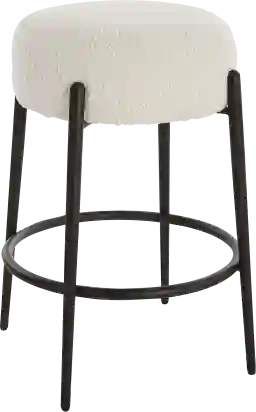 This Enzian plush counter stool is covered in a luxurious white faux shearling, suspended within satin black finished metal legs. Customer assembly is required.
