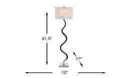 Marvel at the winding curves and sleek profile of the Equian Lane floor lamp, an artistic statement piece with contemporary sophistication showcasing a wavy, sleek design crafted in sterling silver with a gleaming chrome finish. The rectangular white shade illuminates your space with a decadent light. It offers a three-way switch and a 100-watt bulb capacity that can be tailored to meet your lighting needs.