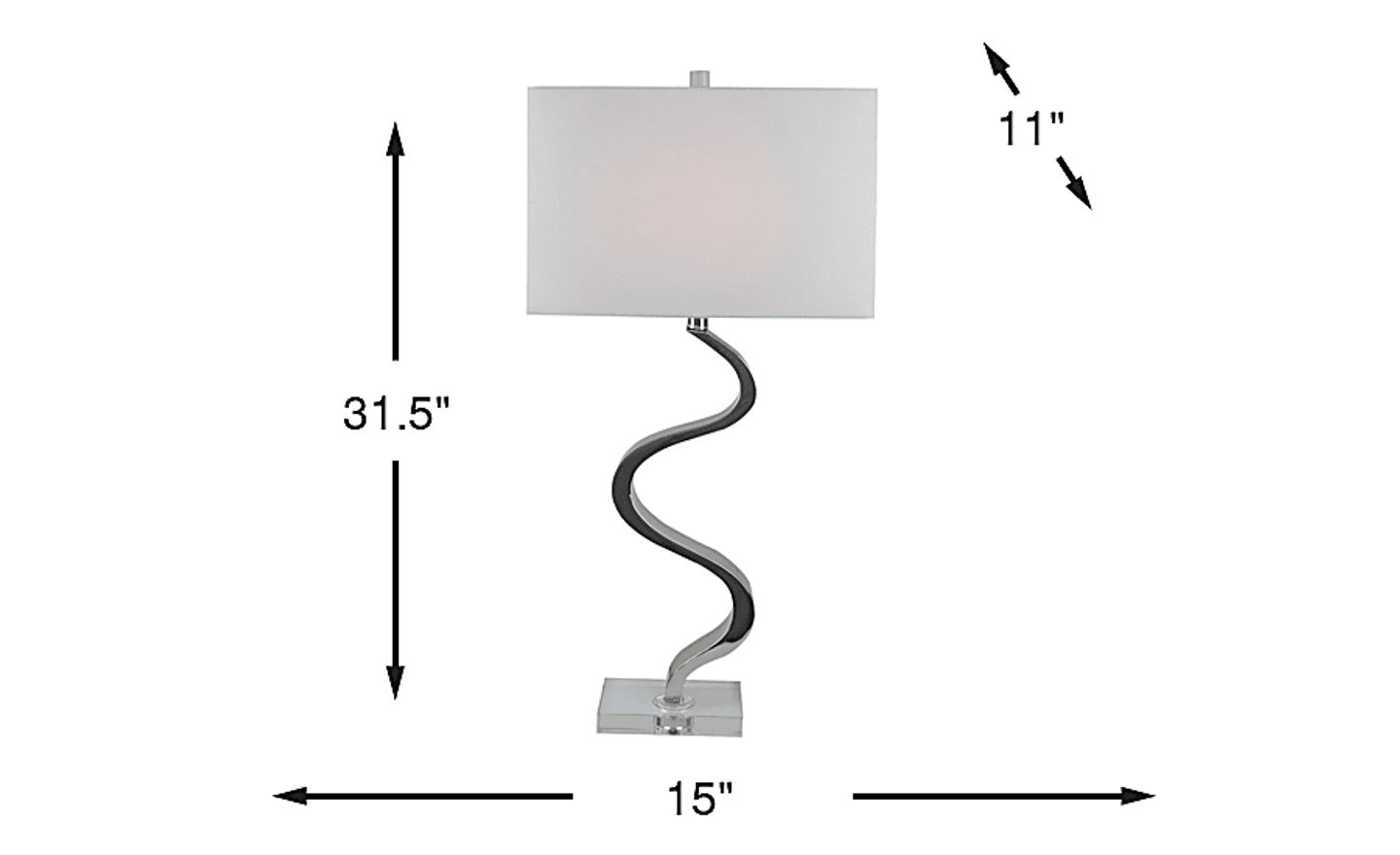 Usher in a new wave of excitement with the reflective Equian Lane table lamp. Crafted with stainless steel in polished silver with crystal elements, this transitional lamp has a unique wave shape and features a three-way switch that supports a 100 watt bulb. The look is topped off by a neutral tone shade.