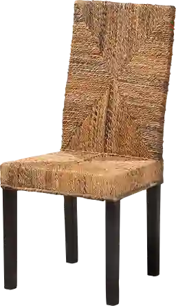 Uphold a tranquil atmosphere for every occasion with the serene design of the Erastus brown side chair. This boho piece consists of a solid mahogany wood frame wrapped in woven banana fiber. Its tall backrest gently curves to ensure a cozy embrace, while the woven banana fiber is geometrically arranged to form a crisp, eye-catching display. The Erastus will arrive fully assembled and features tapered legs that complement its sleek silhouette while providing excellent stability and support. Adept at lending a carefree ambiance to every occasion, the Erastus is sure to become a beloved part of any arrangement. Due to the nature of the natural materials used in this product, it may have variations in areas such as, but not limited to, color, pattern, grain and texture. The hair-like strands of rattan/rattan-fiber are common due to the nature of the material.