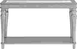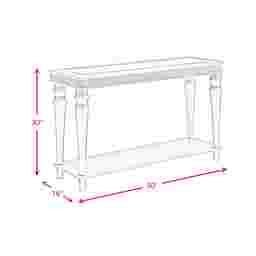 Define your living space with the glamourous style of the Erato sofa table. Accented with a mirror plate, the tabletop's broad surface is complemented by an equally spacious open shelf, extending your storage and display options. Stylized legs provide a durable foundation, while the glitter trim adorning the table's perimeter elevates its visual appeal. Whether tucked behind your favorite sofa or grandly staged along an entryway wall. Customer assembly is required.