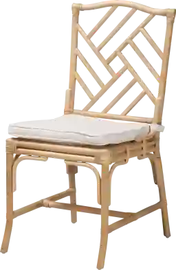 Natural rattan is an exceptionally resilient fiber, prized in furniture construction for its inherent strength and flexibility. This specific model is engineered with an ergonomic crossbar between the straight legs to enhance lateral stability. The backrest utilizes a geometric openwork design with intersecting rods, which provides reliable lumbar support while maintaining a lightweight, bohemian aesthetic.