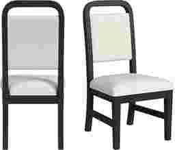 Accent your dining space with the refined simplicity of the standard dining height Eriba side chair. This chair artfully blends geometric and organic shapes by showcasing straight chair legs with stretchers that reduce racking and rounded seat back corners. The chair's cut outs create an open, airy essence, while the upholstered seat and back enhance the comfort of the supportive foam cushioning. Customer assembly is required.