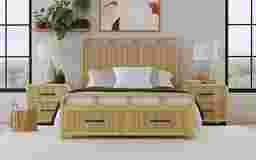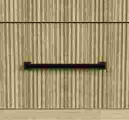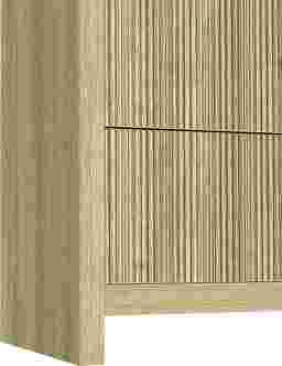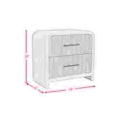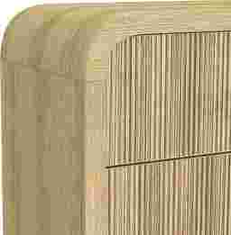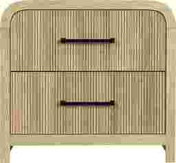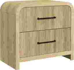 Enhance your bedside with the stylish Eriba nightstand. Finished in a light wood with natural grain detailing, this piece brings warmth and elegance to any space. Sleek, rounded edges and vertical reeding throughout create a modern yet refined aesthetic. The nightstand features a convenient USB port, perfect for easy device charging, while the black felt-lined top drawer provides protection and organization for your essentials. Spacious drawers, accented with bold black bar pulls, offer ample storage. With clean, minimalist line. Customer assembly is required.