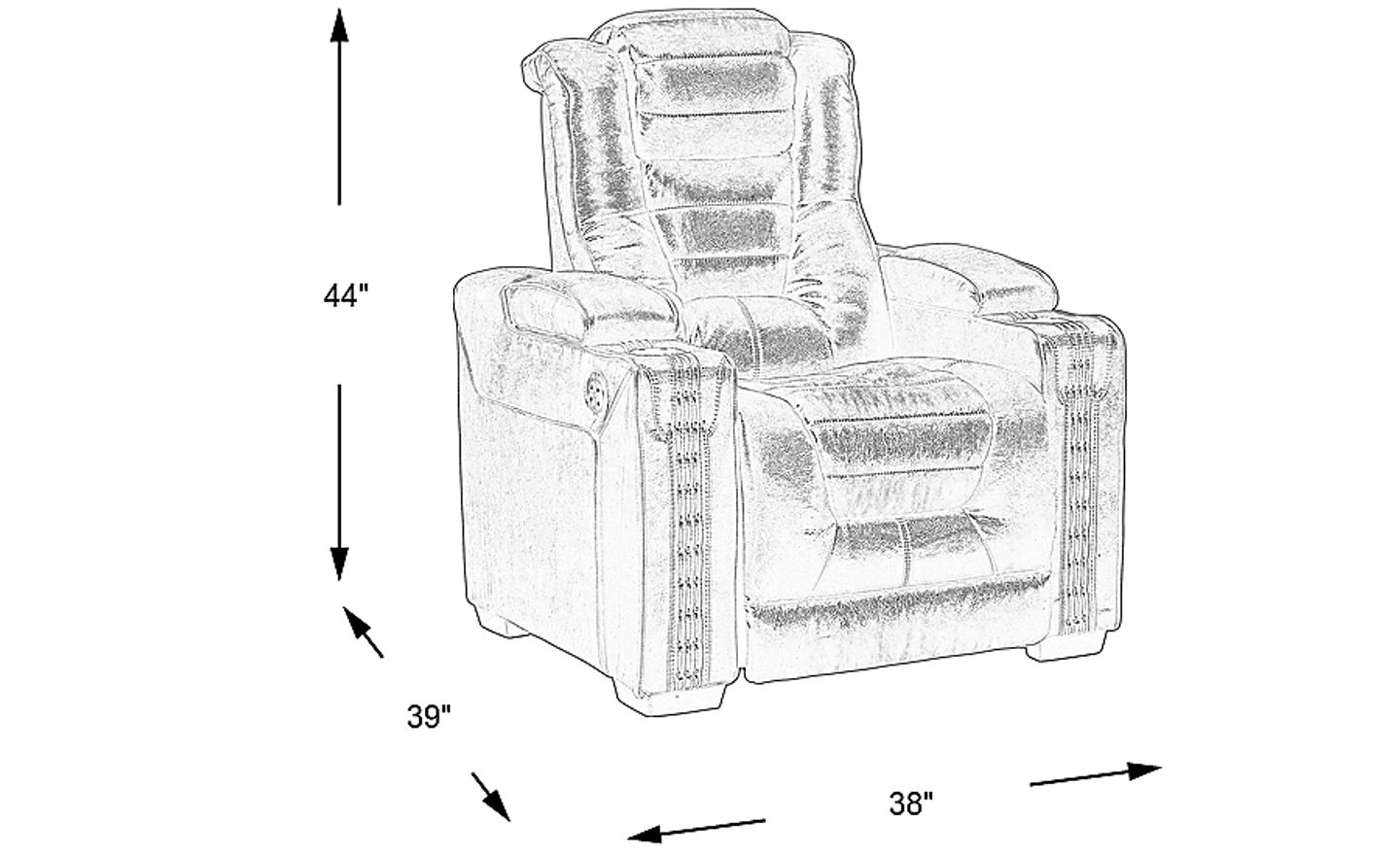 Let the Chief dual power recliner be your headquarters for relaxing evenings and weekends. This premium seating choice from the Eric Church Highway To Home collection, has it all. Upholstered in embossed polyester with the rich textured look of brown leather, it features dual power reclining mechanisms that independently raise and lower the headrest and padded chaise footrest with the touch of a button. The thick padded seat and back feature deep channeling and "no-sag" sinuous springs. Each arm, including the one on the right side with a cup holder, has a padded armrest that lifts to uncover a storage compartment. The front of each arm has cool stitching detail and small nail accents that mimic the neck of a guitar. Upholstery: 100% Polyester