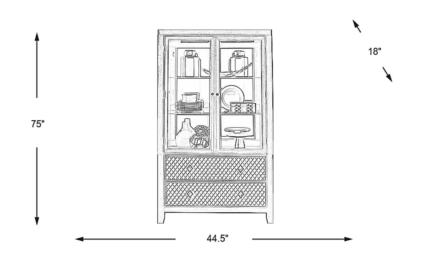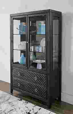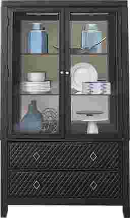 The Encore china cabinet embodies eclectic appeal inspired by the music and lifestyle of Eric Church. Its sturdy hackberry wood solids construction with white oak veneers in a rich brown finish and diamond quilted drawer panels offer a contemporary aesthetic, while its geometric, polished chrome hardware creates a glamorous finishing touch. Three interior adjustable shelves behind glass-paneled doors allow you to display all of your favorite china pieces.