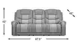 Like music for the home, the Headliner dual power reclining sofa offers a relaxing place to harmonize with family and friends. Inspired by country music performer and songwriter Eric Church, the rustic, contemporary styling ensures a sense of warmth and ease along with premium features that fit the way you live today. From the gray top grain leather where the body touches to the contrasting stitching detail and diamond stitched seating insets, the chief goal in the design is attention to detail. For customized comfort, the sofa's dual power headrest and padover chaise footrest can be raised and lowered to any position at the touch of a button. A convenient USB port on the outside of both arms keeps electronic devices charged up and ready to go. 23" extension when footrest is fully reclined. Allow 6" for wall spacing. Top Grain Leather Where the Body Touches and Polyurethane Fabric sides and backs.