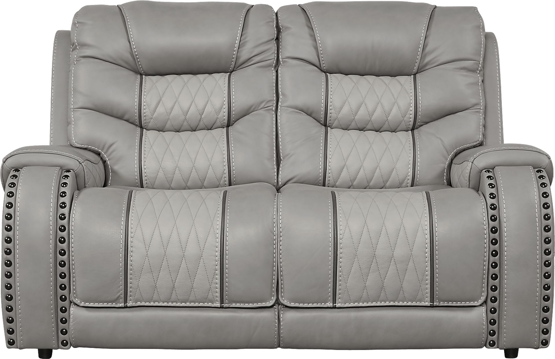 The Headliner loveseat offers the perfect seating duet. Taking a page out of Eric Church's songbook, it has a rustic contemporary vibe that's all about relaxing with family and friends. Upholstered in gray top grain leather where the body touches, the loveseat features contrasting stitching detail, nailhead accents and diamond stitched seating insets. Top Grain Leather Where the Body Touches and Polyurethane Fabric sides and backs.