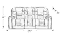 Made for your comfort, the Headliner reclining sofa takes relaxation to the next level. The sofa is upholstered in gray top grain leather where the body touches. Stylish diamond stitching insets, nailhead accents and contrasting stitching detail add quality touches while the padover chaise style footrests provide full leg and foot support for napping or watching TV. 23" extension when footrest is fully reclined. Allow 6" for wall spacing. Top Grain Leather Where the Body Touches and Polyurethane Fabric sides and backs.