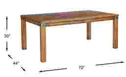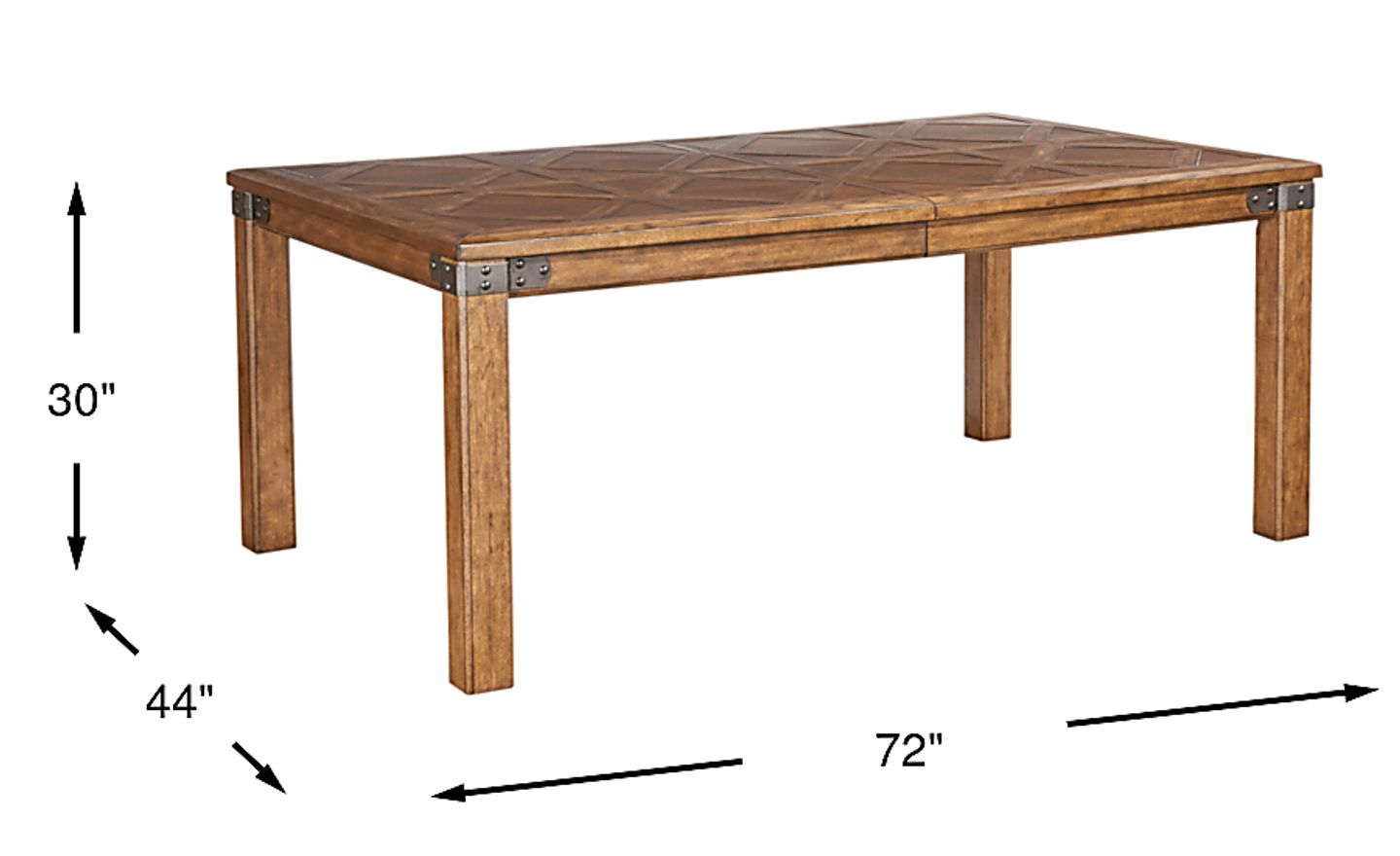 Set the tone for special meals with family and friends with the Heartland Falls dining table. This expertly crafted 44 x 72 inch table, inspired by classic Arts and Crafts design with a rustic western influence, features a plank effect top, worn edges and diamond patterned "fancy face" raised veneers. Long lasting construction is brought together with high quality wood solids along with quartered oak and cherry veneers in a rich whiskey brown finish. Each corner is reinforced with metal accent strapping often found on antique American furniture. Extra guests can always be included thanks to the 18 inch leaf that extends the table to 90 inches.