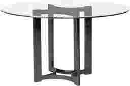 Decorate with a dining table that's in perfect harmony with your style. The Silverton Sound gathering place is designed to be contemporary and unique, with just a bit of an edge. Supported by a black chrome metal base, the table has an inch thick, 54 inch glass top. Combined, this duet has just the right aesthetic to make family and friends feel at home.