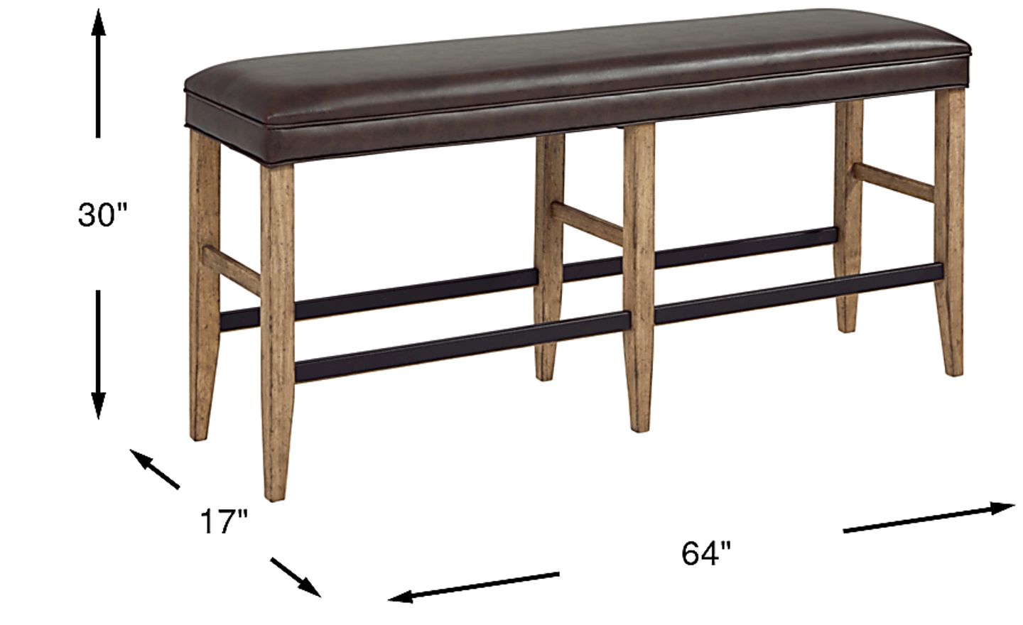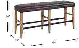 Create a rustic bar vibe with the Tap Room bar height bench. This long bench provides comfortable seating for 2- 3 people. The dark brown upholstery has a leather look enhanced by a base of wood solids in a blonde finish.