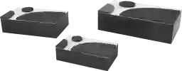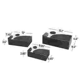 Inspired by sleek elegance and clean lines, this minimalist design brings effortless luxury with monochromatic tones and bold, angular details. The Eridal Decorative Box combines durability with modern style. Each rectangular box features an oiled black finish with contrasting white tops and is accented with 3D geometric details for added visual interest. The set includes boxes measuring 15.1L x 9.4W x 4.4H, 12L x 7.45W x 3.6H, and 9.05L x 5.45W x 2.85H inches, with a combined weight of 5.73 lbs. Customer assembly is required.