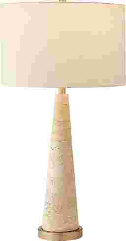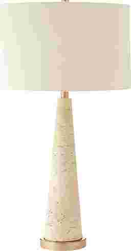 The Erock Beige Lamp is the epitome of refined simplicity-a piece that whispers elegance through its clean lines and natural textures. Its tall, tapered base, crafted from creamy stone with subtle speckled details, feels like a sculptural work of art, grounded by a warm brass accent that adds just the right touch of sophistication. The cylindrical linen shade crowns the design with soft, organic beauty, diffusing light into a warm, inviting glow that transforms any space into a serene sanctuary. Perfect for a bedside table or a chic living room corner, this lamp doesn't just illuminate-it elevates, bringing harmony, grace, and timeless style to your home. Partial assembly may be required.