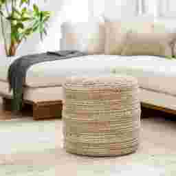 Discover the ultimate in global-inspired comfort with the Esco natural pouf. This unique accessory is a delightful blend of jute and cotton, making it a sturdy yet comfortable addition to your living space. It's filled with polybeads that conform to your body for unmatched coziness. Its easy-to-care-for nature allows you to simply spot clean it with mild detergent and lay flat to dry, ensuring it retains its charm for years to come. Whether you're using it as extra seating or a footrest, this versatile piece enhances any room with both practicality and style.