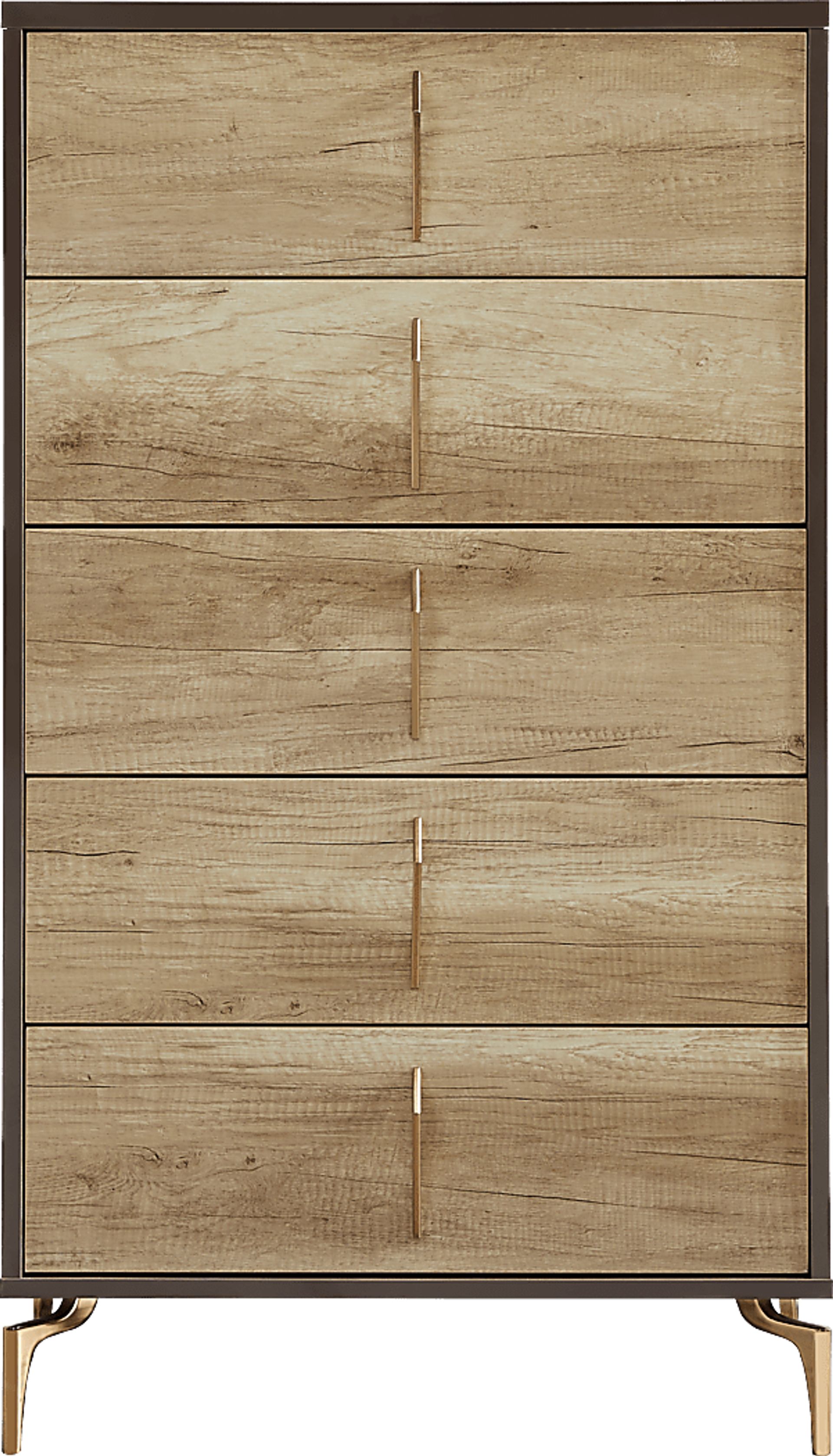 The cool, sleek design of the Esmedira chest transforms your space into an upscale chic retreat. Contemporary in style, this chest features five soft closing drawers with matching rose gold pulls and legs for the ultimate look of sophistication.