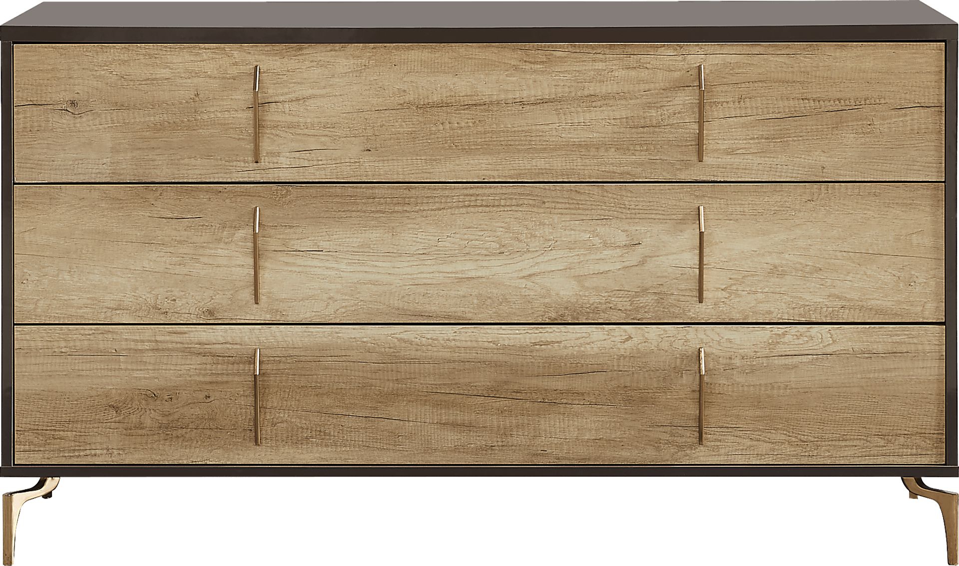 The cool, sleek design of the Esmedira dresser transforms your space into an upscale chic retreat. Contemporary in style, this dresser features three soft closing drawers with rose gold metal pulls and legs for the ultimate look of sophistication.