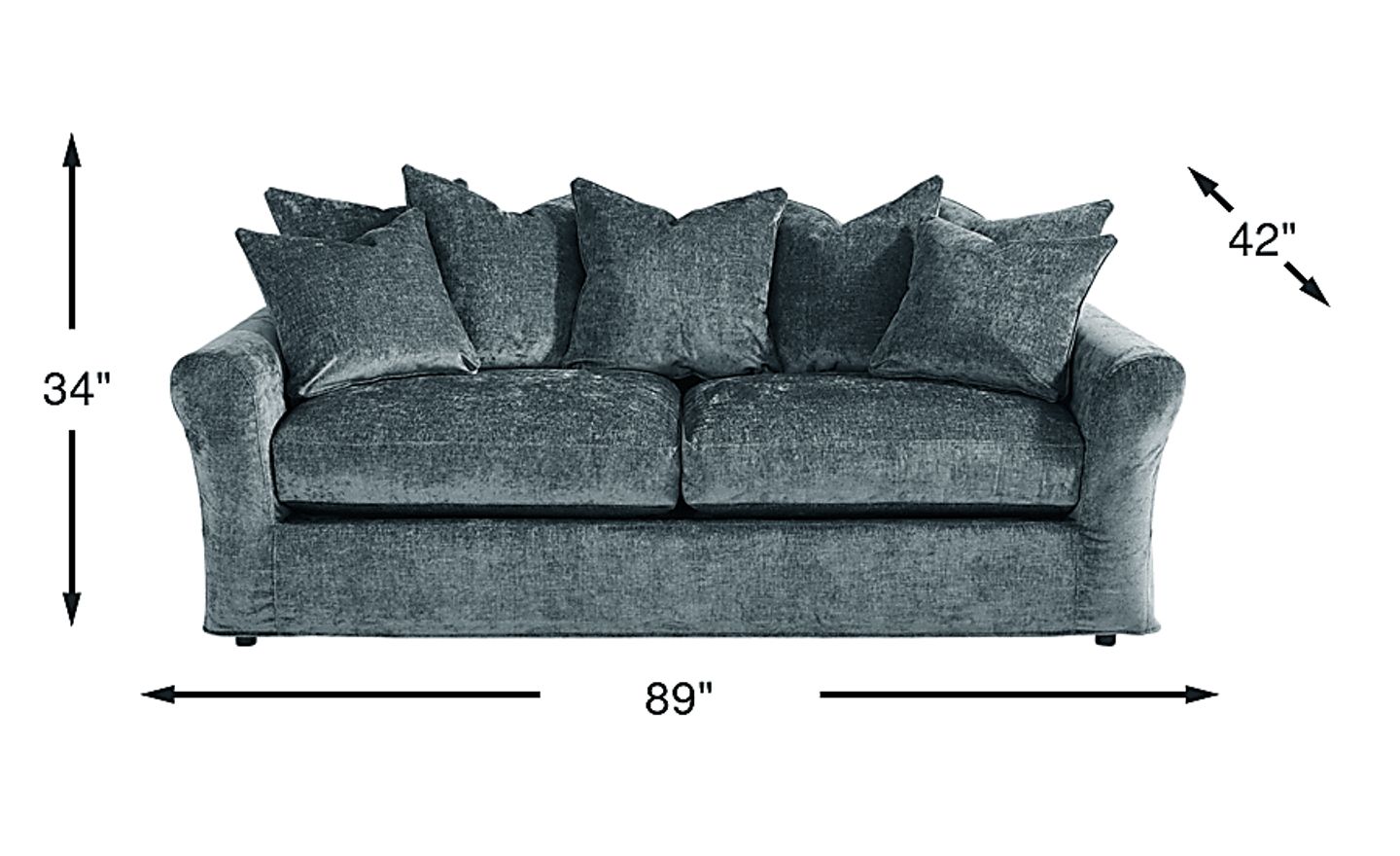 Turning everyday moments into quiet, restorative breaks from the hustle and bustle, the Essex Lane collection from Cindy Crawford Home carves out an intimate, tranquil space with each sumptuous piece. Transitional in style, this apartment sofa showcases plush chenille slipcovers in a blue lagoon hue, offering a timeless, welcoming aesthetic. cushioned roll arms add a touch of sophistication while gently embracing in comfort. The seat cushions feature a plush custom blend of feathers, fiber and down surrounding a supportive foam core for comfort that’s soft yet structured. Cloud-like deep seating and loose scatter-back pillows invite you to unwind in indulgent relaxation and style. Upholstery: 85% polyester, 15% rayon.