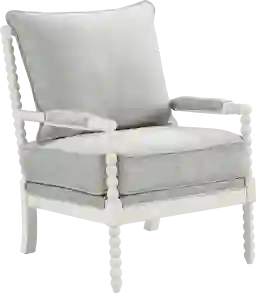 While you can certainly buy a pair to create a cohesive look, this chair is designed to be a versatile accent. The gray tweed appearance serves as a sophisticated neutral that complements many color palettes. Our design experts suggest that an accent chair is the perfect opportunity to introduce contrast; the unique turned, spindle detail on the wood frame provides a traditional touch that can elevate the style of a more modern or transitional room.