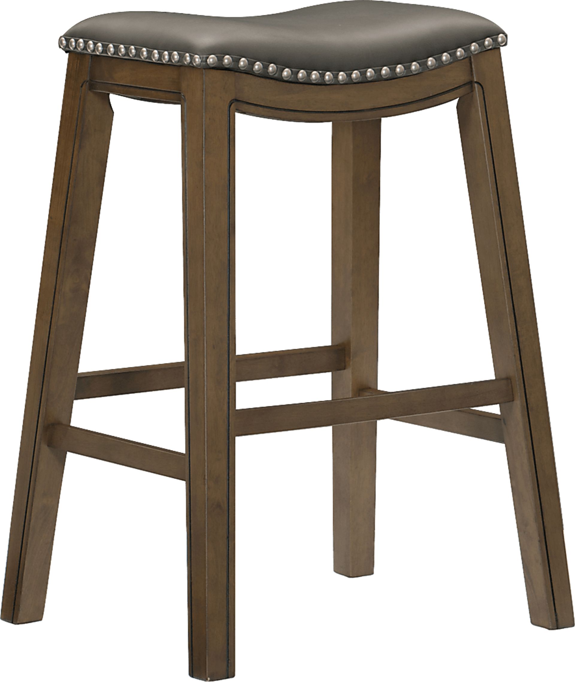 Transitional styling paired with versatility of selection makes the Etton a perfect addition to your home's casual dining spaces. Whether pairing with a table that you already have, adding seating to your countertop or casual entertaining. The brown finished wood legs and seat apron feature routed accent while the faux leather seat features nail head trim that further defines the stool's profile. Customer assembly is required.
