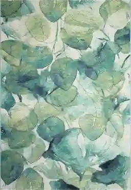 The Sacred Flower transitional contemporary flatweave area rug features a collage of multicolored green Sacred Flower leaves scattered on an ivory background. The botanical design brings a fresh nature feel to your indoor and outdoor space. Made in Egypt from 75% polypropylene/25% polyester, the performance Eucapas Collection is Power Loomed to create intricate designs with a broad color spectrum and a high-quality finish. The material is flatwoven, low profile, weather resistant, easy care, UV stabilized for enhanced fade resistance, durable and ideal for those high traffic areas such as your patio, sunroom, kitchen, entryway, hallway, living room and bedroom making this the ideal indoor or outdoor rug. Detailed patterns are offered in an eclectic mix of styles ranging from tropical, coastal, geometric, contemporary and traditional designs making these perfect accent rugs for your home. Limiting exposure to rain, moisture and direct sun will prolong rug life.
