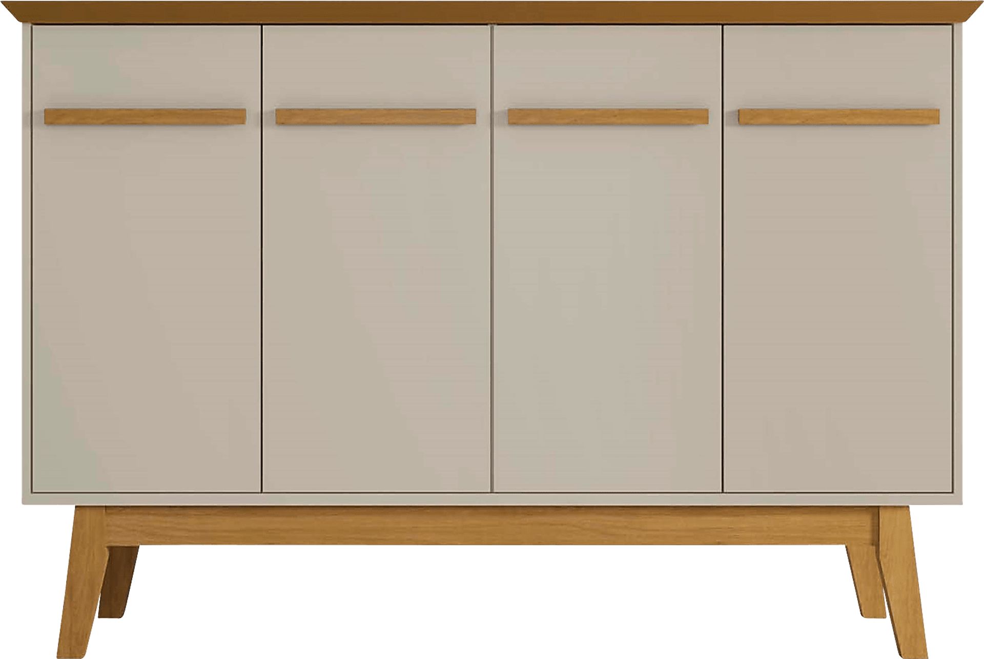 Update your dining area or living space and entertain in style, with the Eula sideboard that acts as a buffet and storage center, in the perfect blend of mid-century design and modern functionality. Cabinet style doors with a soft close feature offer ample space for tucking away dishes, tablecloths, and dinnerware to host ultimate dinner parties. Add candlesticks, framed photos, or a mail tray on its smooth base to personalize the piece and make it your own. Beautiful craftsmanship and intricate detailing shines, with durable splayed wood legs, beveled top, and sleek handles to finish. Customer assembly is required.