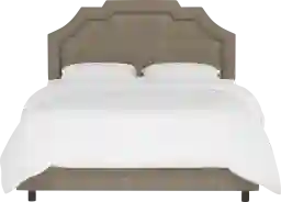 The Evarelle I fully upholstered bed has a unique headboard shape, allowing you to chart a course for a bedroom retreat that is at once comfortable-and distinguished. The headboard is wrapped in a sumptuous textured linen fabric, highlighting the beautiful curves and angles. The bed comes complete with fully upholstered rails and a standard metal bed frame which is easy to assemble. If you are in search of an exceptional design to serve as the primary focus in your bedroom, this bed definitely deserves consideration. Customer assembly is required. This piece is made to order and may take up to 6 weeks to deliver.