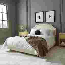 The Evarelle I fully upholstered bed has a unique headboard shape, allowing you to chart a course for a bedroom retreat that is at once comfortable-and distinguished. The headboard is wrapped in a sumptuous textured linen fabric, highlighting the beautiful curves and angles. The bed comes complete with fully upholstered rails and a standard metal bed frame which is easy to assemble. If you are in search of an exceptional design to serve as the primary focus in your bedroom, this bed definitely deserves consideration. Customer assembly is required. This piece is made to order and may take up to 6 weeks to deliver.