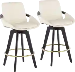 The contemporary design of Everan I counter height stool combines style and comfort. A look of leather seat is beautifully accented by a stylish black wood armrest and frame with a gold footrest. The Everan I counter height stool has a 360 degree swivel feature. Customer assembly is required.