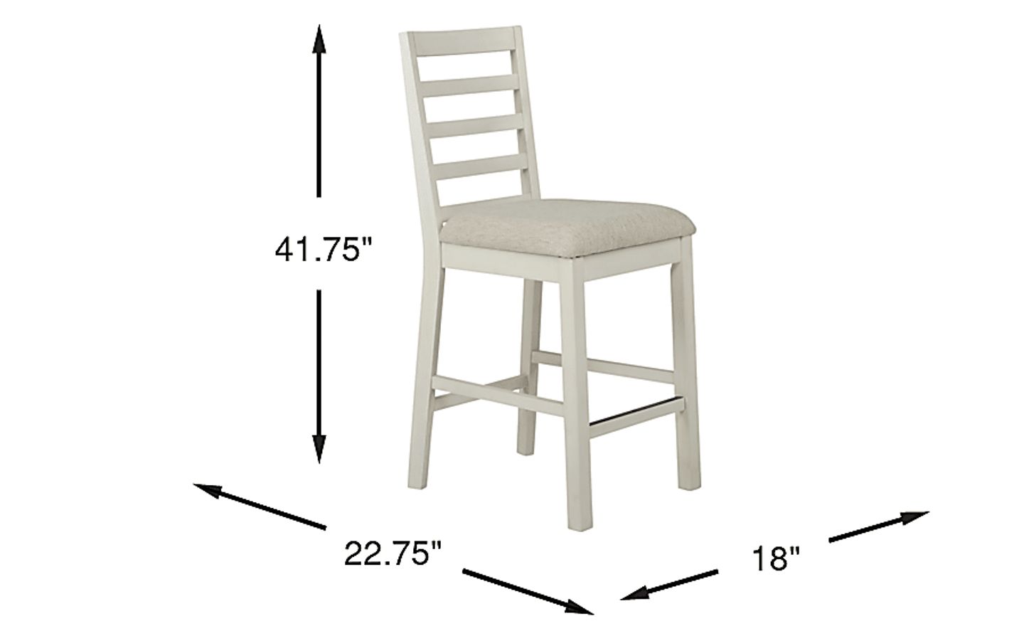 Charming and quaint, the Everdeen Cottage counter height stool has a classic style that withstands the test of time. Crafted of wood solids and birch veneers, it boasts a clean white finish. This stool's ladder back design evokes a farmhouse feel, making it the perfect piece to complement a traditional home. Extending comfort for long nights of entertaining, the seat is upholstered in a neutral beige tone.