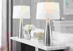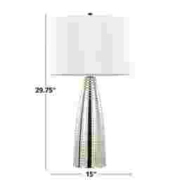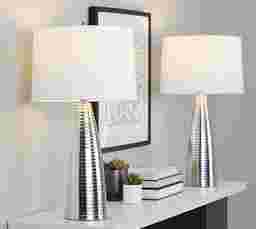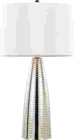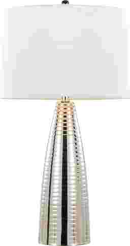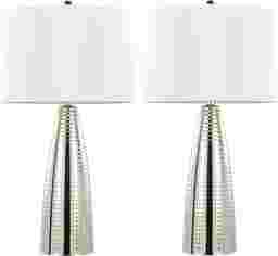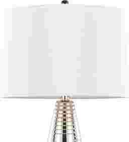 Give your living room or hallway some contemporary glam style with the Ewald Shade Silver Lamp, Set of 2. These beautiful lamps have a rounded bullet shape that builds upwards rib by rib for a distinctive texture that adds a luxe appearance to your space that is crowned with a complimentary tapered linen drum shade. Partial assembly may be required.